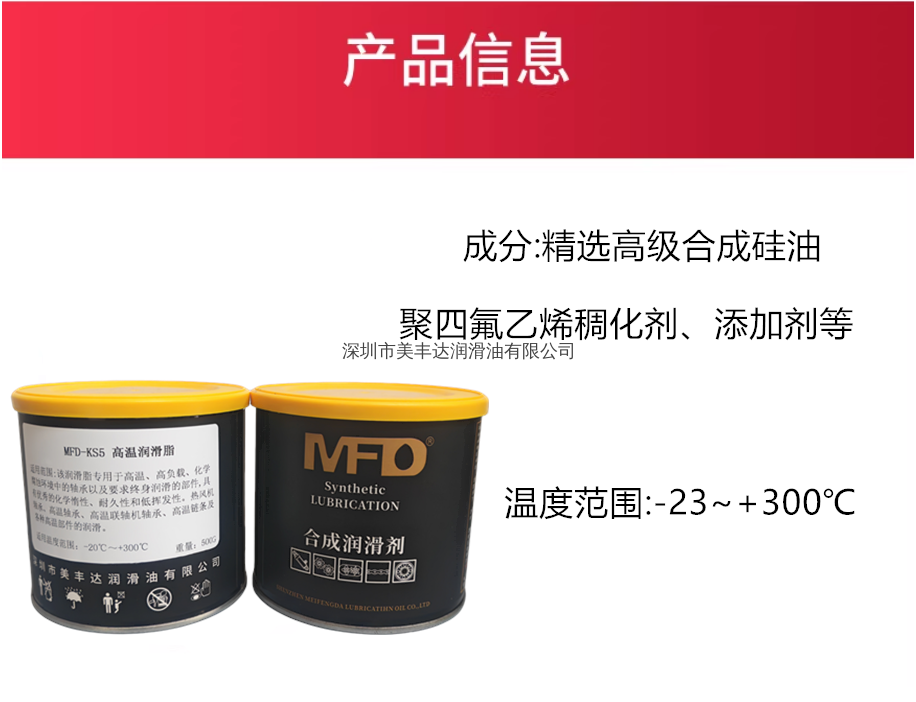 MFD-KS5采用高级合成硅油和聚四氟乙烯稠化剂,并配以精心挑选的、高级的添加剂组合研制而成。